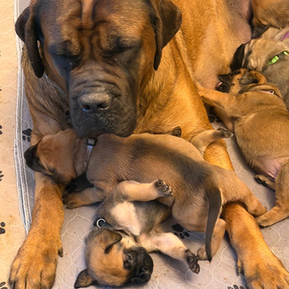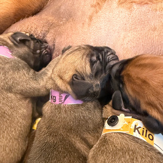 Wren & Styxx welcomed 10 healthy, beautiful puppies on February 4, 2026. We've got 7 boys and 3 girls in a even mix of fawn and apricot. Everyone is doing great!